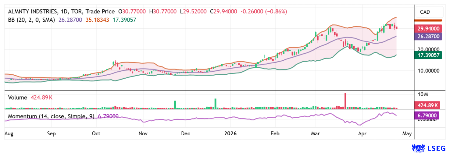 Wichtig war zudem die Nasdaq-Notierung. Damit wurde die Aktie für einen größeren institutionellen Kreis investierbar. Zielführend konnte Almonty Ende 2025 eine umfangreiche Kapitalerhöhung durchführen und die Nachfrage nach den Anteilsscheinen nahm deutlich zu. Mit einem Cashbestand von nahezu 270 Mio. CAD zum Jahreswechsel ist Almonty komfortabel aufgestellt, um das enorme Wachstum zu stemmen.
