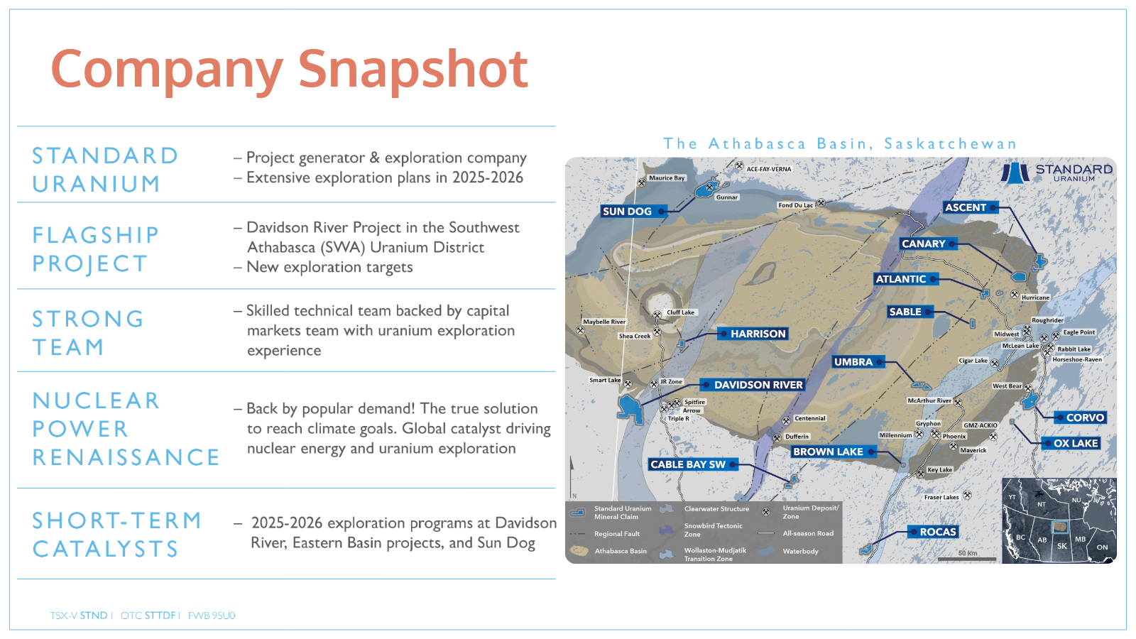 STANDARD URANIUM LTD. | CA85422Q1037 , CAMECO CORP. | CA13321L1085 , DENISON MINES CORP. | CA2483561072