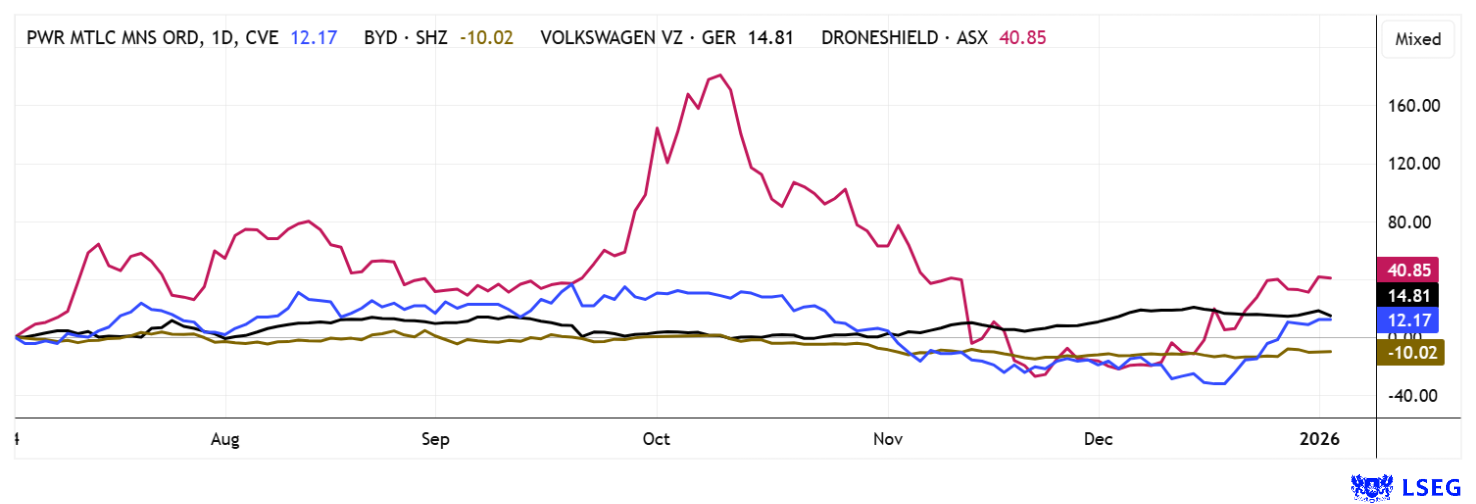 Auf und nieder: Verdoppler und Halbierer unter sich! BYD, VW, DroneShield und Power Metallic Mines