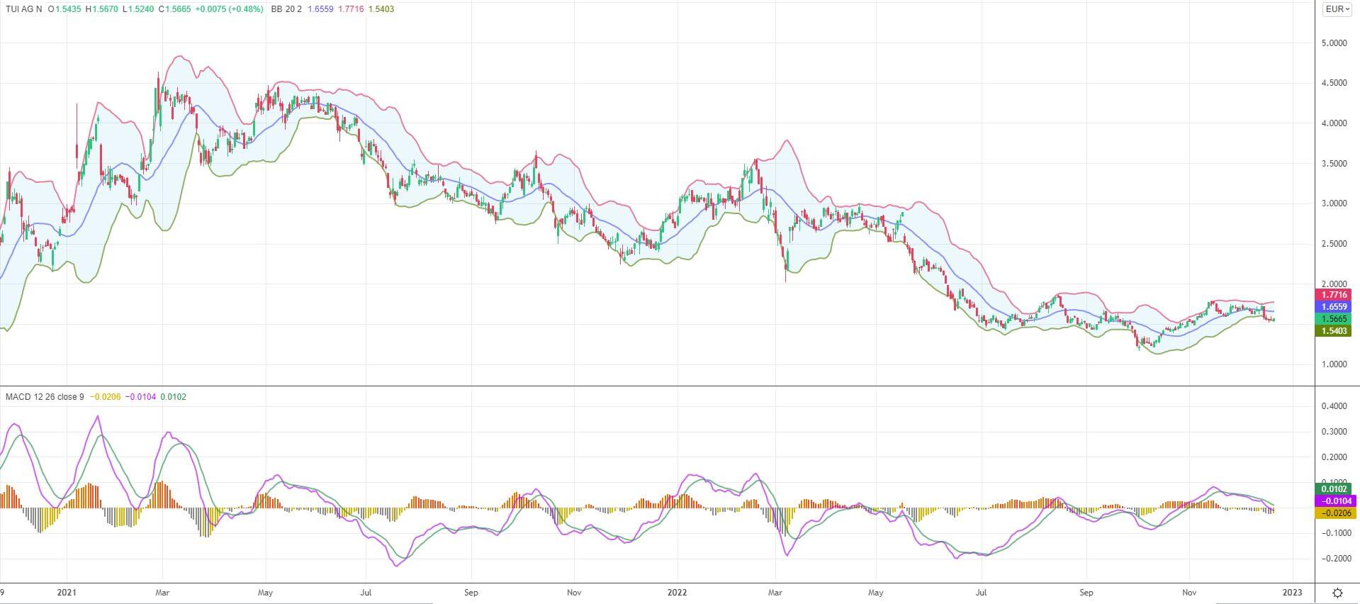 Der neue Konzernchef Sebastian Ebel will in 2023 die Rückzahlung der Staatshilfen angehen, mit denen der Bund den Touristikriesen vor dem Untergang bewahrt hatte. Die erwarteten Gewinne aus dem Reisegeschäft reichen dafür nicht aus, denn abgelaufenen Geschäftsjahr (30.09.) schaffte es der Konzern unter dem Strich noch nicht in die schwarzen Zahlen zurück. Dank der deutlich gestiegenen Buchungszahlen schrumpfte der Nettoverlust jedoch um fast 90% auf 277 Mio. EUR bei einem verdreifachten Umsatz von 16,5 Mrd. EUR. Nach einem Verlust von mehr als 2 Mrd. EUR in 2021 erzielten die Hannoveraner wenigstens ein bereinigtes EBIT von 409 Mio. EUR. Jetzt sollen Aktionäre ein weiteres Mal frisches Geld in Milliardenhöhe zuschießen und einen Kapitalschnitt akzeptieren. Gelingt die erneute Kapitalzufuhr, könnte TUI ein heißer Turnaround-Kandidat für 2023 werden. Stehen sie Gewehr bei Fuß!