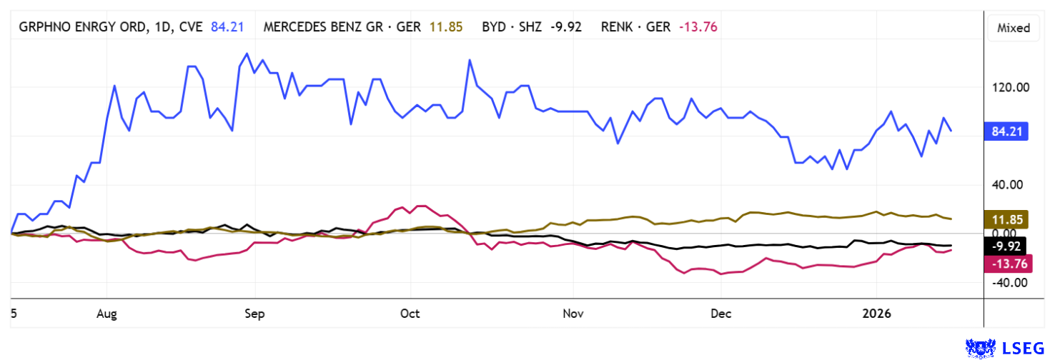 Graphano Energy Ltd. | CA38867G2053 , BYD CO. LTD H YC 1 | CNE100000296 , RENK AG O.N. | DE000RENK730 , MERCEDES-BENZ GROUP AG | DE0007100000