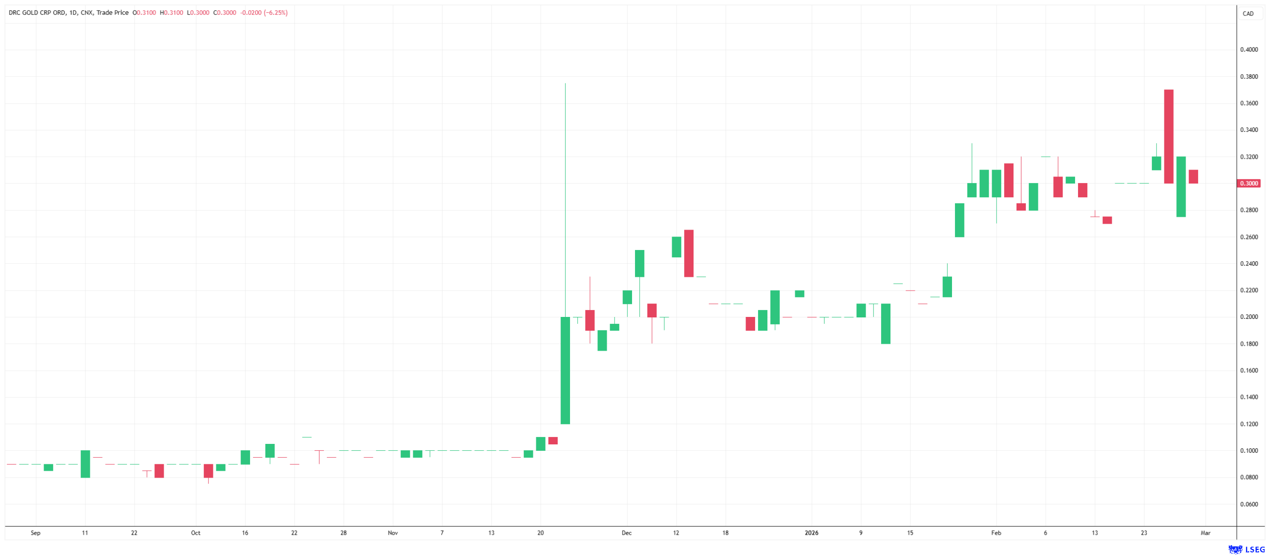 Die Aktie von DRC Gold konnte in den vergangenen Monaten deutlich zulegen. Noch immer gehört der Wert allerdings zu den chancenreichen Titeln. Die zuletzt erworbenen Liegenschaften und die Pläne, zügig eine erste Ressourcenschätzung zum Giro-Goldprojekt vorzulegen, garantieren Investoren einen stetigen Newsflow. Mit einer Marktkapitalisierung von nur rund 33 Mio. CAD hat DRC Gold im Erfolgsfall noch mehr Luft nach oben.