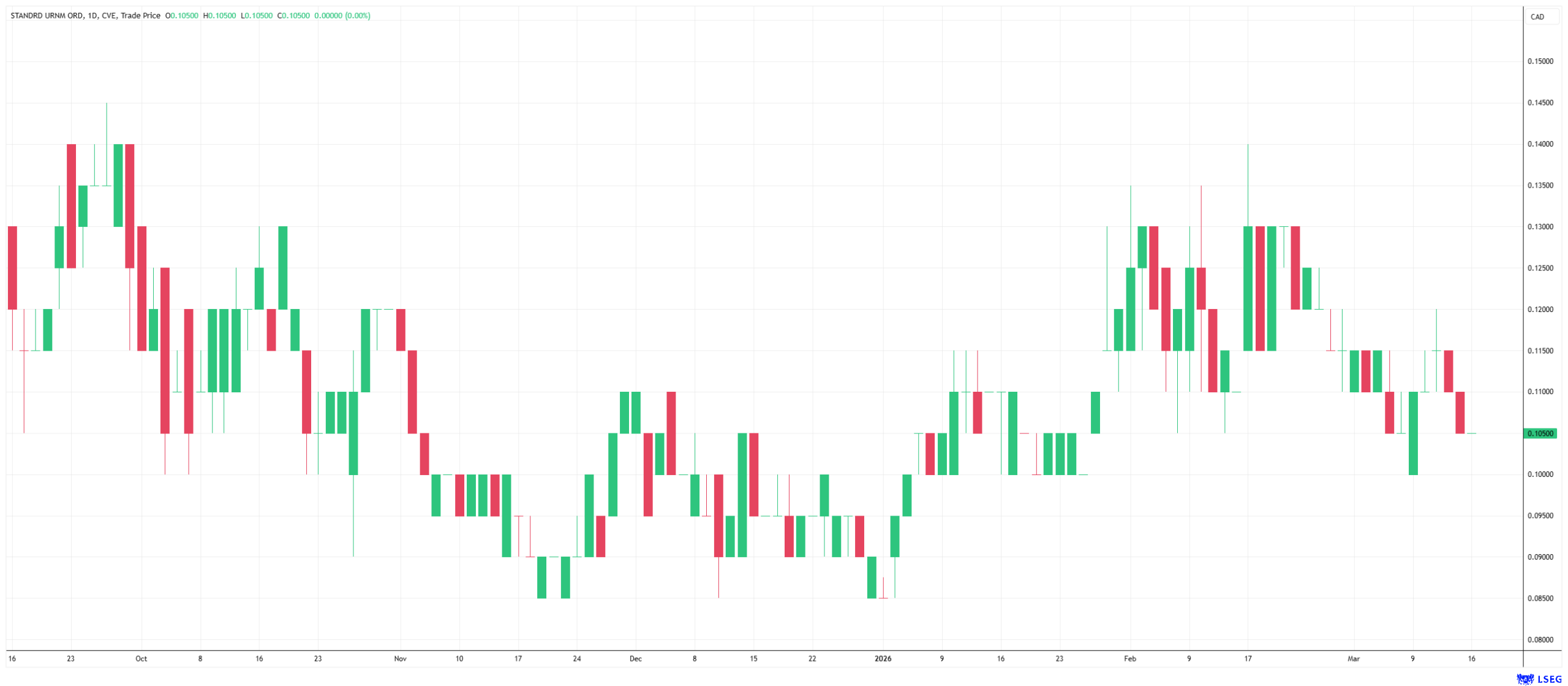 Der Uranmarkt verzeichnet aktuell ein strukturelles Defizit von 5,8 bis 6,7 Mio. lbs, was den Spotpreis zeitweise auf über 100 USD trieb und aktuell leicht darunter konsolidieren lässt. Die Internationale Energieagentur (IEA) geht davon aus, dass die Nachfrage nach Uran bis 2040 auf bis zu 204.000 t ansteigen könnte. Standard Uranium positioniert sich im kanadischen Athabasca-Becken und verfolgt das Geschäftsmodell eines Projektgenerators. Das finanzielle Risiko der Exploration senkt das Unternehmen durch Earn-In-Abkommen mit Partnern wie Aventis Energy und Collective Metals. Im Februar startete Standard Uranium das Winterbohrprogramm auf dem Corvo-Projekt, bei dem Bohrungen im Umfang von 2.500 bis 3.000 m geplant sind. Ein Fokus liegt dabei auf der Manhattan-Zone, wo erste Oberflächenproben starke Gehalte von 8,10 % Uran (U3O8) lieferten. Parallel nimmt das schuldenfreie Unternehmen das Rocas-Projekt in Angriff, wo für die erste Phase Bohrungen im Umfang von 1.200 bis 1.500 m in einer Tiefe von 100 bis 200 m vorgesehen sind. Im Frühjahr folgen zudem Bohrungen auf dem Flaggschiff-Projekt Davidson River.