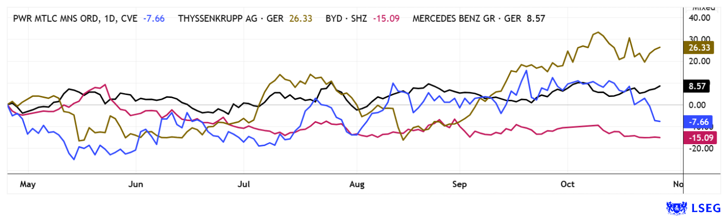 Kritische Metalle plus Gold ist gleich Rendite! Weitere 100 % mit Power Metallic, BYD, Mercedes, thyssenkrupp und TKMS