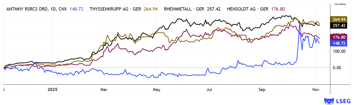 ANTIMONY RESOURCES CORP | CA0369271014 , TKMS AG & CO KGAA | DE000TKMS001 , THYSSENKRUPP AG O.N. | DE0007500001 , RHEINMETALL AG | DE0007030009 , HENSOLDT AG INH O.N. | DE000HAG0005