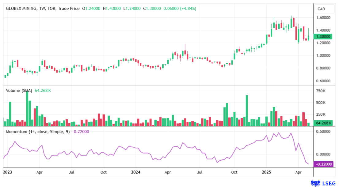So schnell kann es mit den Börsenlieblingen gehen. Hatten Rheinmetall & Co. in der Vorwoche noch Rekordmarken angelaufen, war am gestrigen Montag erst mal Schluss mit der Euphorie. Trump einigte sich mit China auf niedrigere Zölle und Wolodymyr Selenskyj reist am Donnerstag in die Türkei, um sich mit dem Aggressor Russland in Gestalt von Wladimir Putin an den Tisch zu setzen. Aktuell ist das noch kaum zu glauben. Für die Kapitalmärkte heißt das aber raus aus Sicherheit, rein in HighTech und Automobile, die größten Gewinner der letzten Stunden. Man könnte das Ganze auch als gesunde Rotation verstehen, denn immerhin befinden sich die großen Indizes auf Rekordlevel, während Tech- und Automotive-Werte in den letzten Wochen ordentlich korrigierten. Wiedermal werden die Karten neu gemischt. Für Globex Mining ist der Rücksetzer für mittelfristige Nachkäufe geeignet.