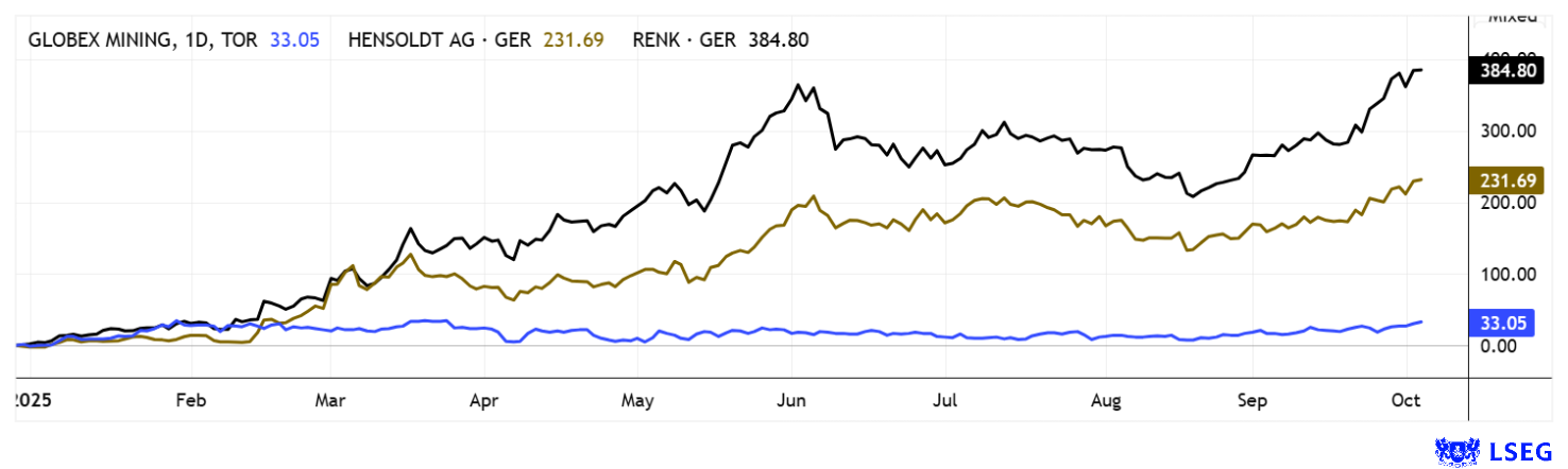 Rüstung zum ersten, zum zweiten, verkauft - jetzt kritische Rohstoffe einladen! Globex Mining, Hensoldt und Renk